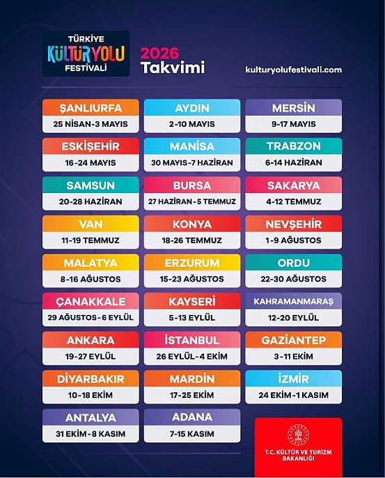 Türkiye Kültür Yolu Festivali'nin 2026 takvimi belli oldu. Malatya Kültür Yolu Festivali 8–16 Ağustos tarihleri arasında konserler, sergiler ve yüzlerce etkinlikle sanatseverlerle buluşacak.