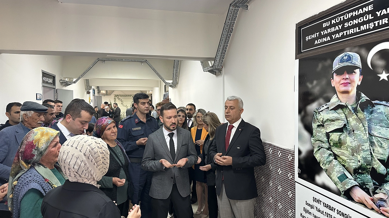 Törende konuşan Kaymakam Osman Kurt, “Şehidimizin ismi artık bu kütüphanede, ilim ve bilginin ışığında yaşamaya devam edecek. Onun aziz hatırasını yaşatmak bizler için bir vefa borcudur,” ifadelerini kullandı.