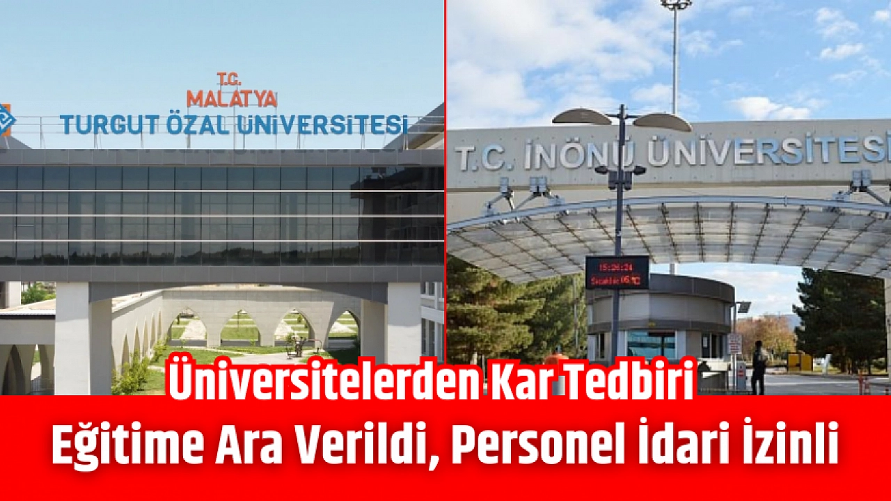 Malatya'da etkisini sürdüren yoğun kar yağışı nedeniyle Malatya Turgut Özal Üniversitesi ve İnönü Üniversitesi'nde bazı personeller idari izinli sayılırken, eğitim-öğretim faaliyetlerinin çevrim içi olarak yapılacağı ve sınavların ileri bir tarihe ertelendiği duyuruldu.