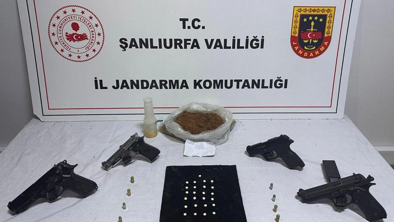 Şanlıurfa'nın Haliliye ilçesinde jandarma ekipleri tarafından gerçekleştirilen operasyonda 3 zanlı gözaltına alınırken yapılan aramalarda ise uyuşturucu madde ve silah ele geçirildi.