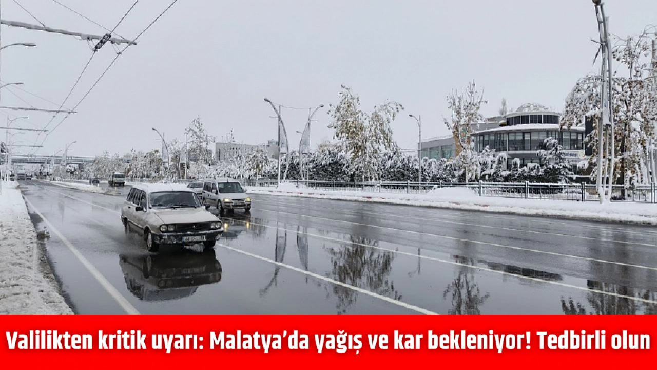 Meteoroloji 13. Bölge Müdürlüğü, 14 Kasım için Malatya ve çevresinde kuvvetli yağış ve yüksek kesimlerde kar yağışı uyarısında bulundu. Bu kapsamda açıklama yapan Malatya Valisi Seddar Yavuz, 14 Kasım Cuma (bugün) günü yaşanabilecek olumsuzluklara karşı vatandaşları uyardı. Yapılan açıklamada şu ifadelere yer verildi: “Yapılan Son değerlendirmelere göre, bugün Cuma (14.11.2025) akşam saatlerinden itibaren Malatya çevrelerinde orta ve kuvvetli yağmur ve sağanak yağış; yüksek kesimlerde ise (1600 metre rakım üzeri) karla karışık yağmur ve yer yer kar yağışı beklenmektedir. Ani sel, su baskını, yıldırım, yerel dolu yağışı, ulaşımda aksamalar, yükseklerde buzlanma ve yağış anında kuvvetli rüzgar gibi olumsuzluklara karşı dikkatli olunmalıdır. Oluşması muhtemel risklere karşı tedbirli ve dikkatli olunması gerekmektedir.”
