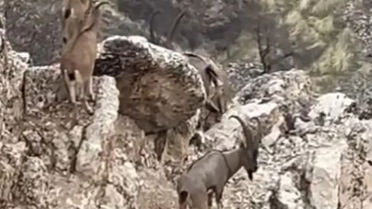 Yaban keçileri sürü halinde görüntülendi