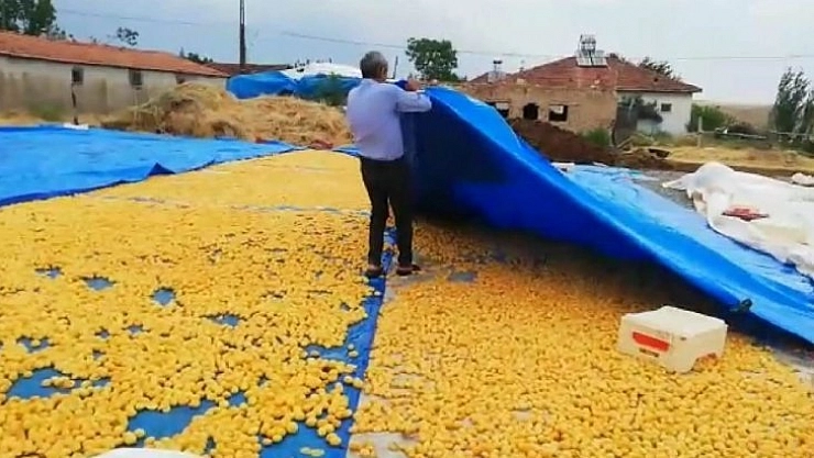 Kayısının başkenti Malatya’da hasat dönemi sürerken, sergende kurutulan kayısılar yağmur altında kaldı. Yazıhan ilçesinde öğleden sonra başlayan sağanak yağış Yeniköy Mahallesi’ndeki kayısı üreticilerini vurdu.