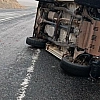 Yağış kazaya neden oldu: Kamyonet yan yattı