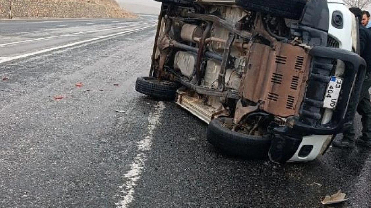 Elazığ yağışla birlikte kayganlaşan yolda, sürücüsünün direksiyon hakimiyetini kaybettiği kamyonet devrildi. Kazada, yaralanan olmazken maddi hasar meydana geldi.