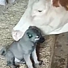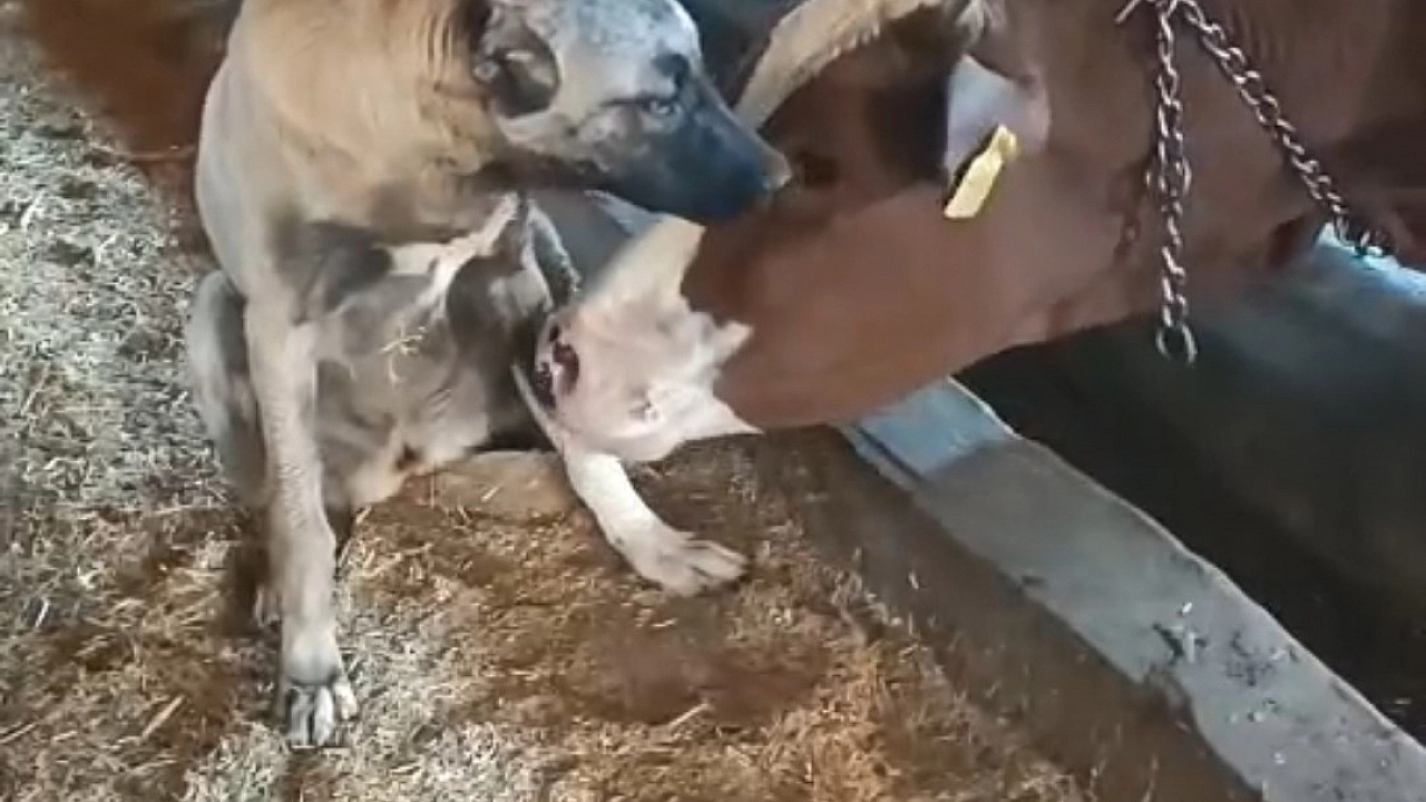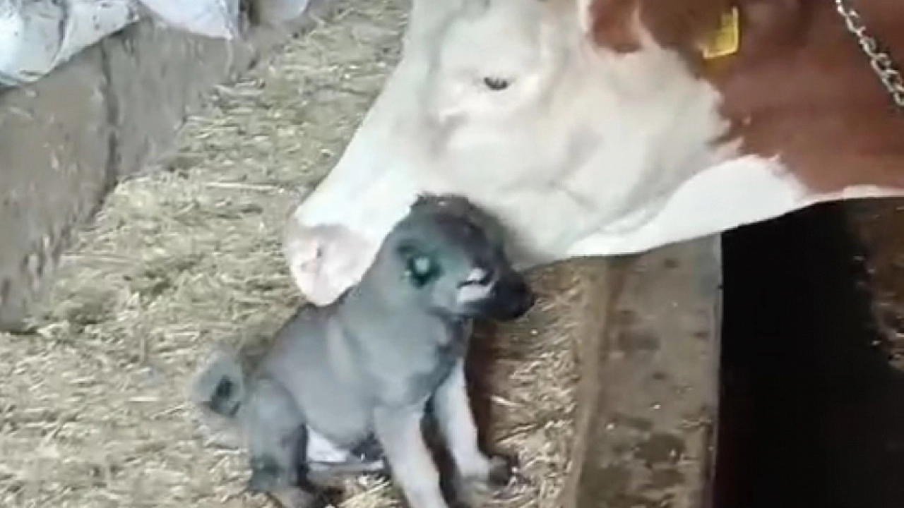 Sivas'ta 45 günlükken ilk aşıları yapılarak bir çiftliğe gönderilen yavru kangalı kendi yavrusu gibi sahiplenen inek, köpekle ilgilendi. Her gün ahıra giderek ineğin önüne oturan yavru kangal, aradan geçen 1 yıla rağmen alışkanlığından vazgeçmedi. İneğin kangal köpeği ile ilgilendiği anlar, cep telefonu kamerasına yansıdı. İnek ve kangal köpeğinin dostluğu görenleri gülümsetiyor.