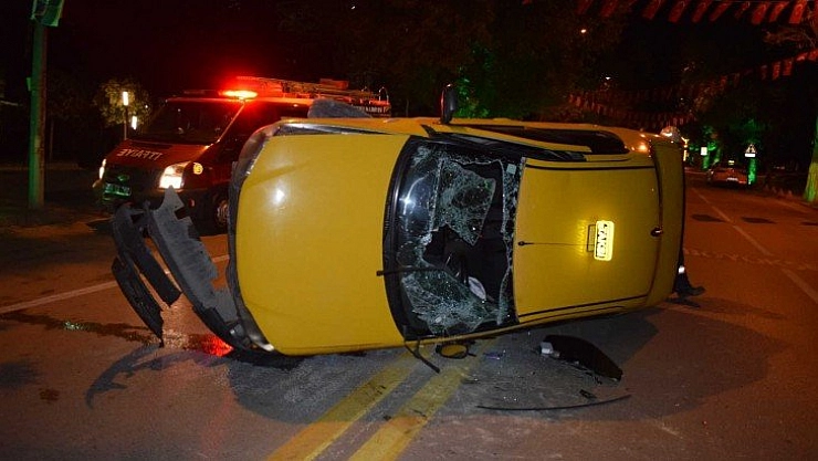 Malatya'da sürücüsünün kontrolünde çıkan ticari taksi yol kenarındaki bordür taşlarına çarparak yan yattı. Kazada araçta sıkışan sürücü yaralandı.