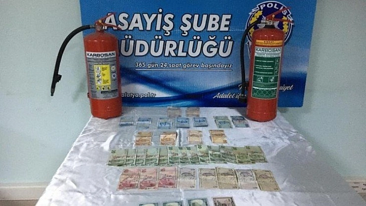 Şahıslar Malatya’dan ayrılmaya çalışırken yakalandı. Şahıslardan bin 620 TL ve 350 Dolar ile yangın tüpü elde edildi.
