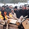 Vatandaşlar kar üzerinde halay çekerek eğlendi.