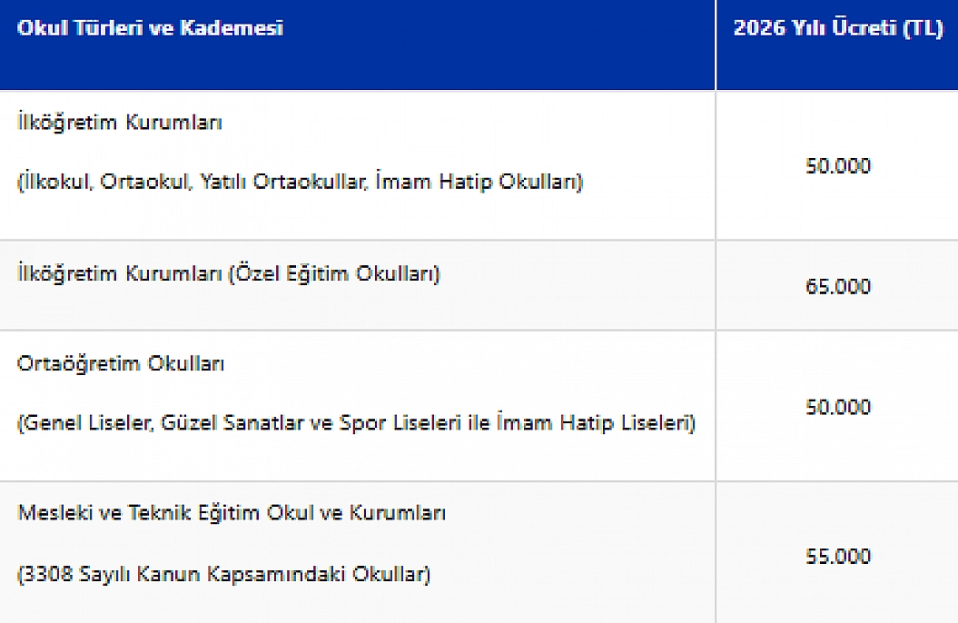Milli Eğitim Bakanlığı'na (MEB) bağlı pansiyonlu okullarda 2026 yılı ücret tarifesi açıklandı. Yeni düzenlemeye göre, ilköğretim kurumlarında yıllık pansiyon ücreti 50 bin liraya yükselirken, mesleki ve teknik eğitim okullarında bu rakam 55 bin lirayı buldu. İşte, Malatya'daki okulların 2026 yılı pansiyon tam ücretleri? Detaylar haberimizde…
