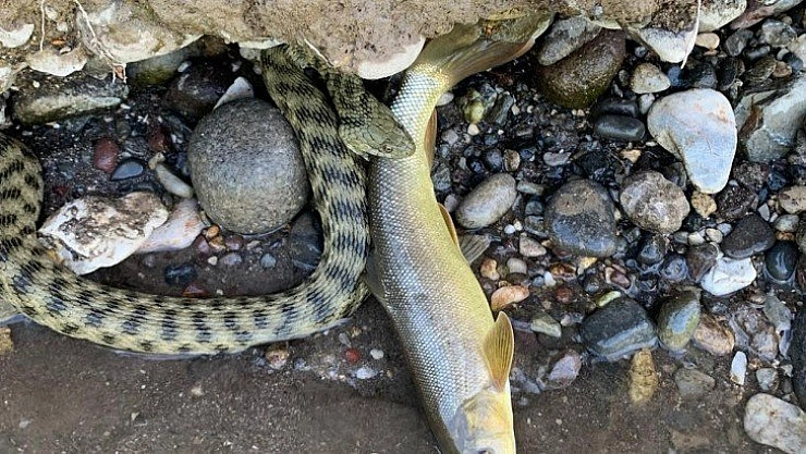 Malatya'nın Arapgir ilçesinde yılanın balık avı, kameraya yansıdı.
