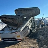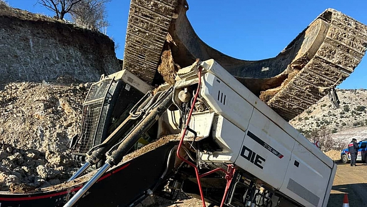 Adıyaman'da, yol yapım sırası esnasında kontrolden çıkan iş makinesi devrildi. Kazada iş makinesi operatörü yaralandı.